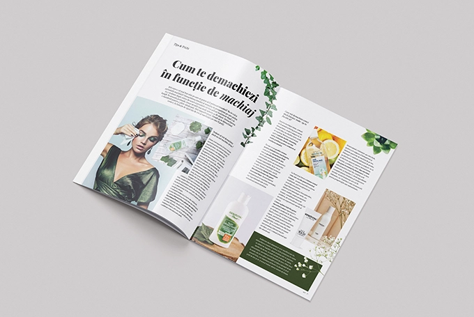 Procesul: am dezvoltat un stil editorial bazat pe ritm vizual, echilibru între text și imagine, tipografie atent aleasă și paginare fluidă. Am integrat produsele în articole utile și inspiraționale, fără a le transforma în materiale strict promoționale. Cromatica, fonturile și imaginile au fost alese pentru a reflecta personalitatea brandului.